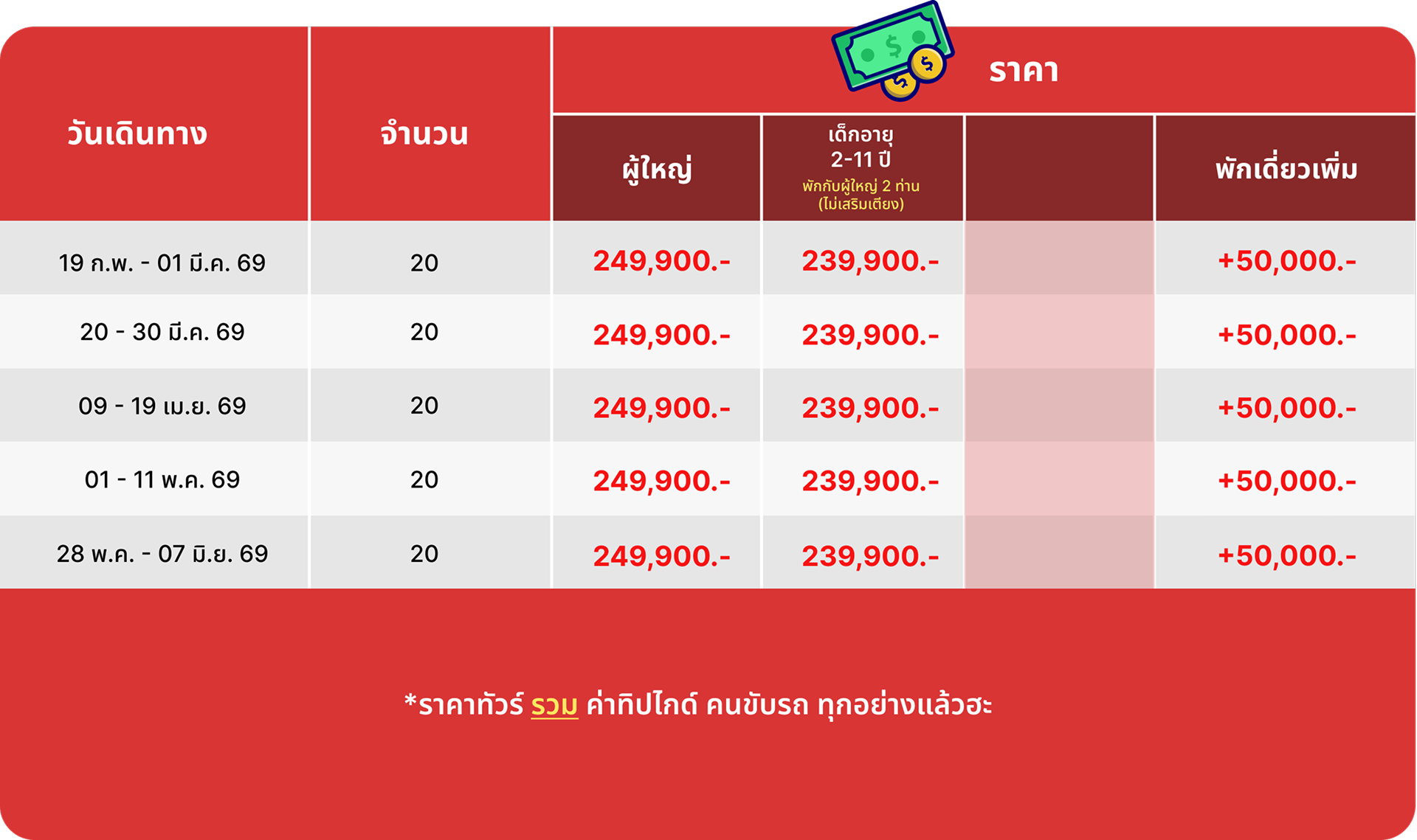 วันที่ 1 | 22.30 น.นัดพร้อมกันที่ สนามบินสุวรรณภูมิ |