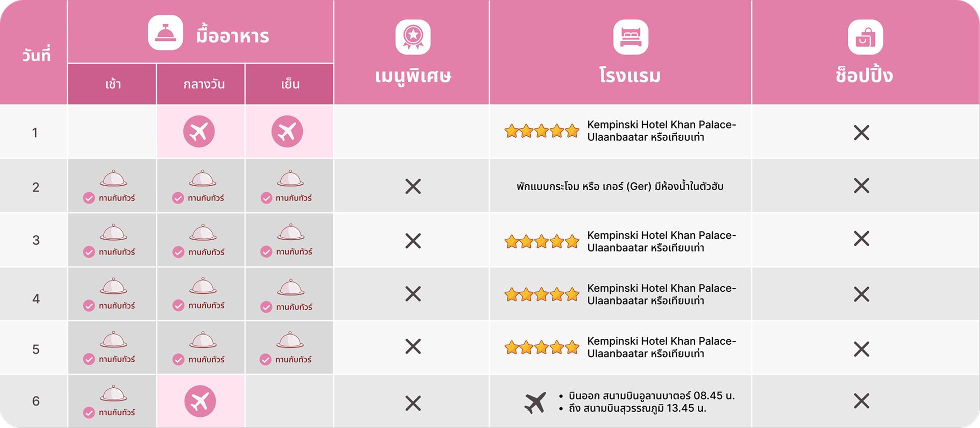 วันที่ 6 | 05.00 น. เดินทางสู่ สนามบินอูลานบาตอร์ / สนามบินเจงกีสข่าน (Chinggis Khaan International Airport)(UBN)