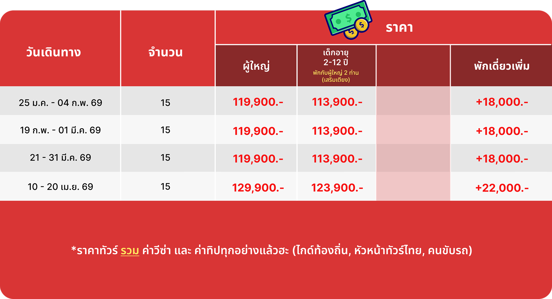 วันที่ 1 | 22.00 น.นัดพบ สนามบินสุวรรณภูมิ |