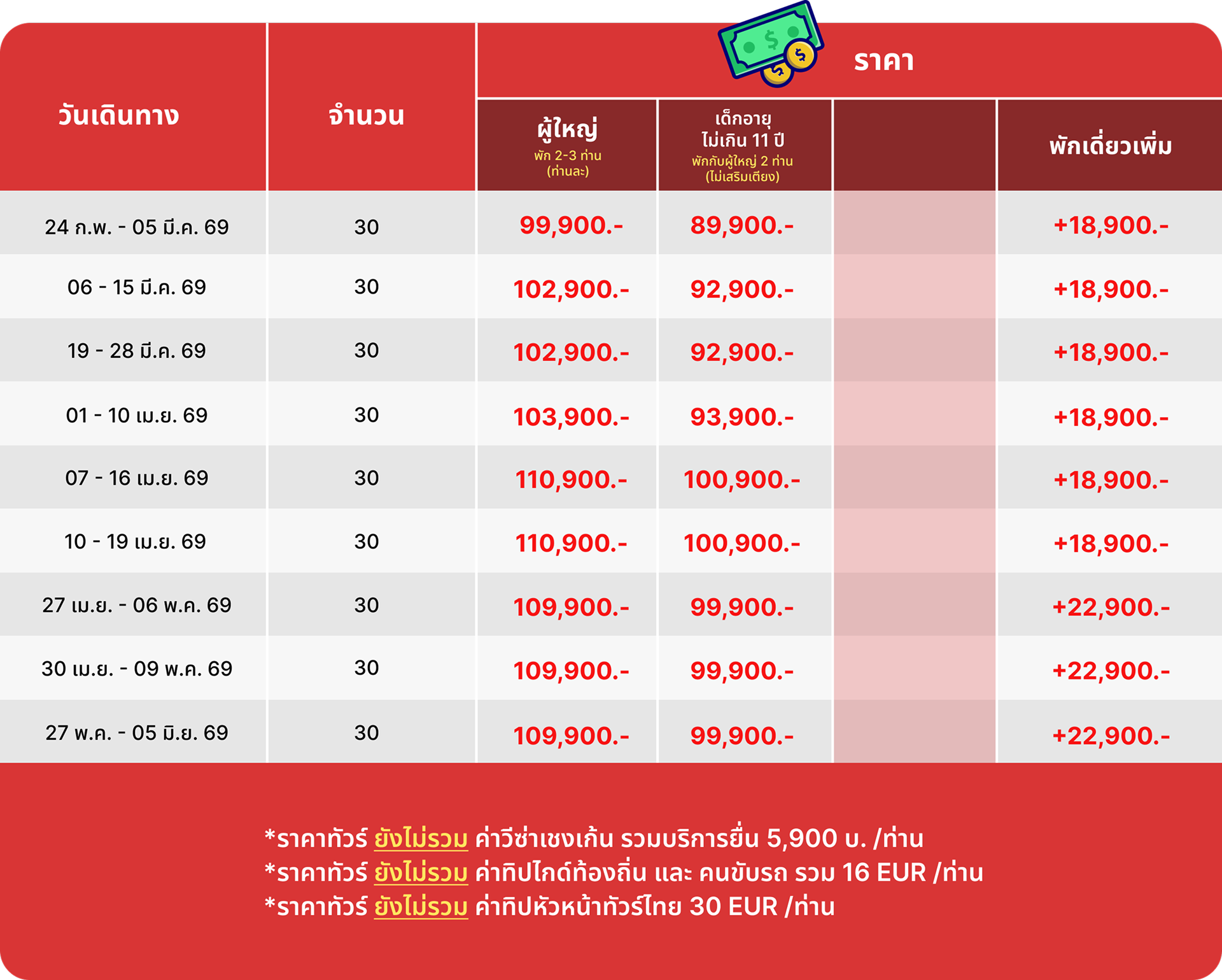 วันที่ 1 | 22.00 น.นัดพบ สนามบินสุวรรณภูมิ |