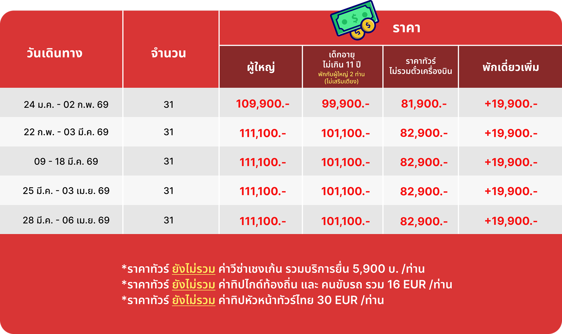 วันที่ 1 | 23.00 น.นัดพบ สนามบินสุวรรณภูมิ |