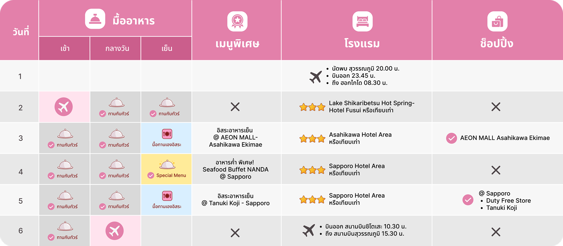 วันที่ 6 | เช้าเดินทางสู่ สนามบินนิวชิโตเสะ (New Chitose Airport)(CTS)