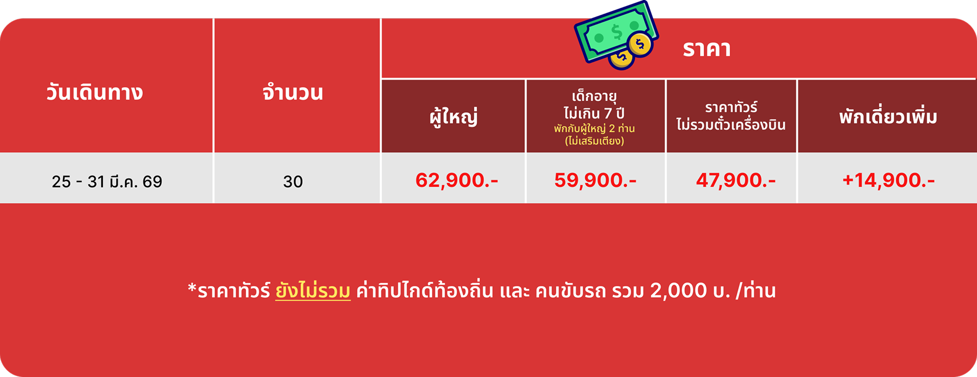 วันที่ 1 | 20.00 น. นัดพบ สนามบินสุวรรณภูมิ