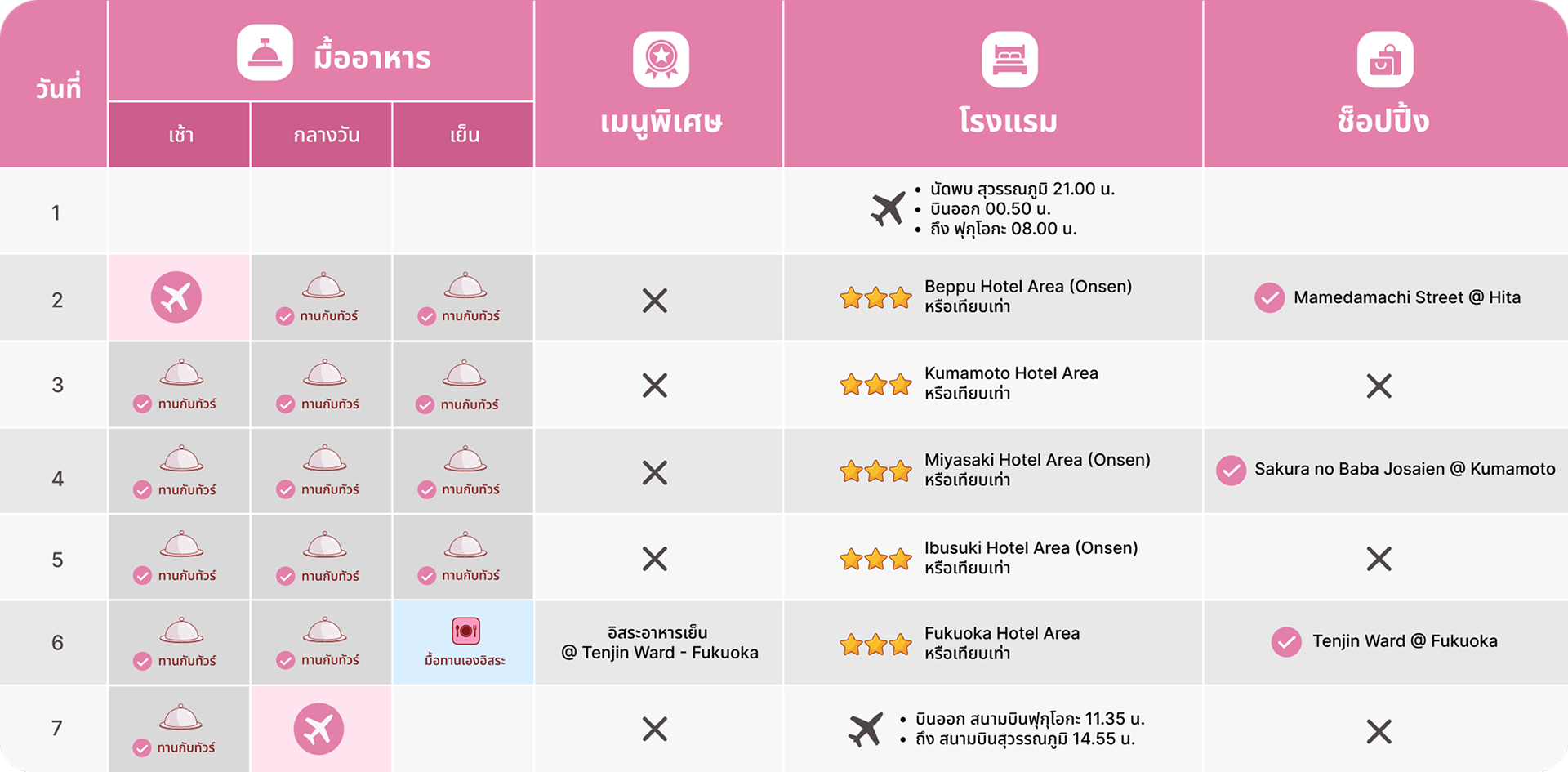 วันที่ 7 | เช้าFukuoka City - เดินทางสู่ สนามบินฟุกุโอกะ (Fukuoka International Airport)(FUK)