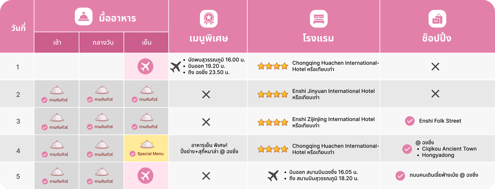 วันที่ 4 | เช้าเมืองเอินซือ - สถานีรถไฟเอินฉือ (Enshi Railway Station) - นั่งรถไฟความเร็วสูง - สถานีรถไฟฉงชิ่ง | สถานีรถไฟฉงชิ่งเหนือ (Chongqing North Railway Station | Chongqingbei | Chongqing North Railway Station) - เมืองฉงชิ่ง (Chongqing)