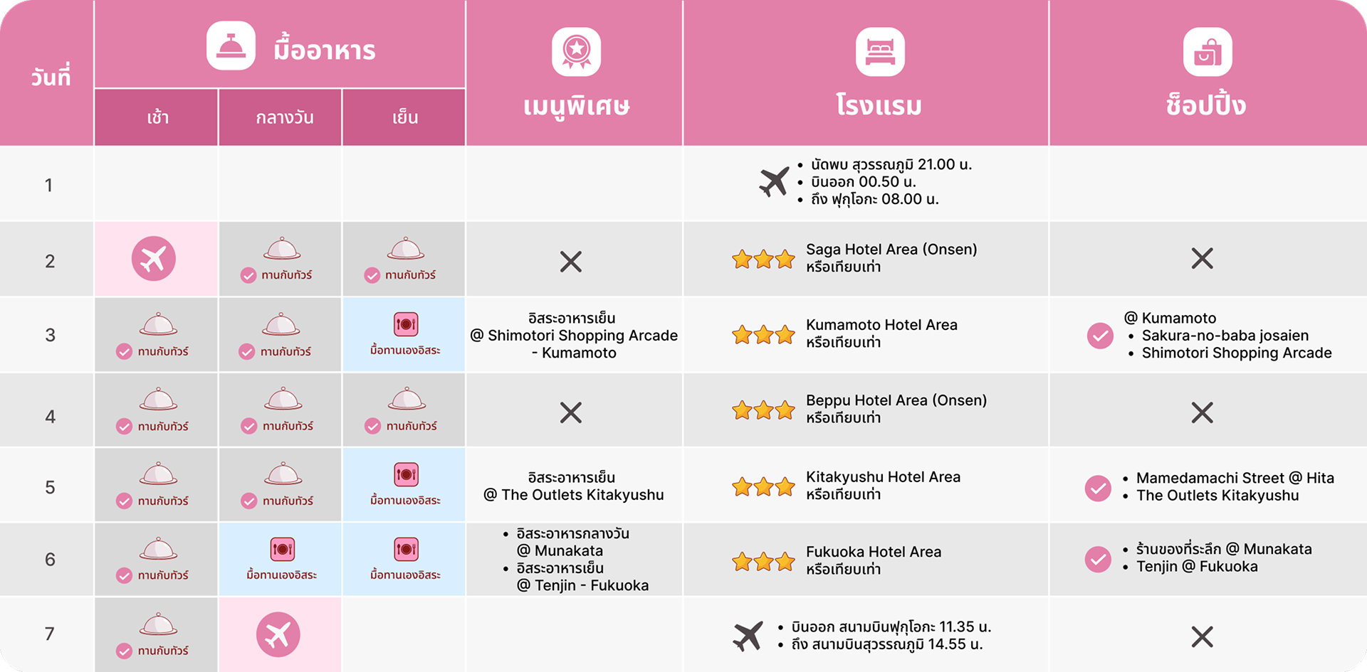 วันที่ 7 | เช้าเมืองฟุกุโอกะ - เดินทางสู่ สนามบินฟุกุโอกะ (Fukuoka International Airport)(FUK)