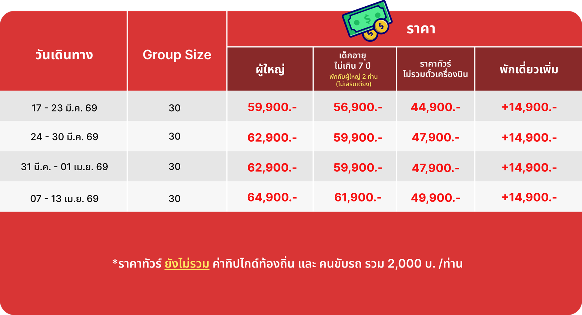 วันที่ 1 | 21.00 น. นัดพบ สนามบินสุวรรณภูมิ |