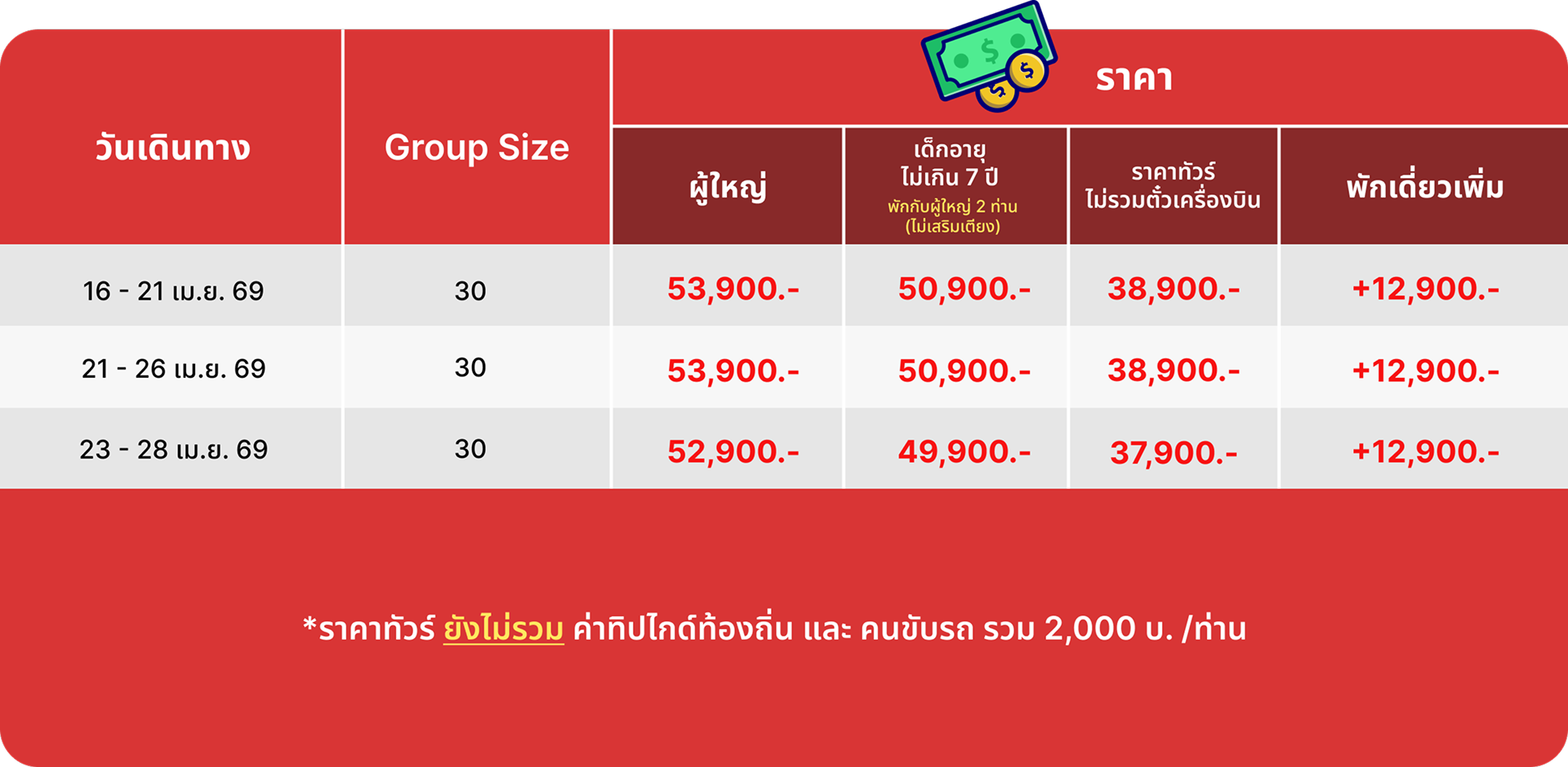 วันที่ 1 | 19.00 น. นัดพบ สนามบินสุวรรณภูมิ