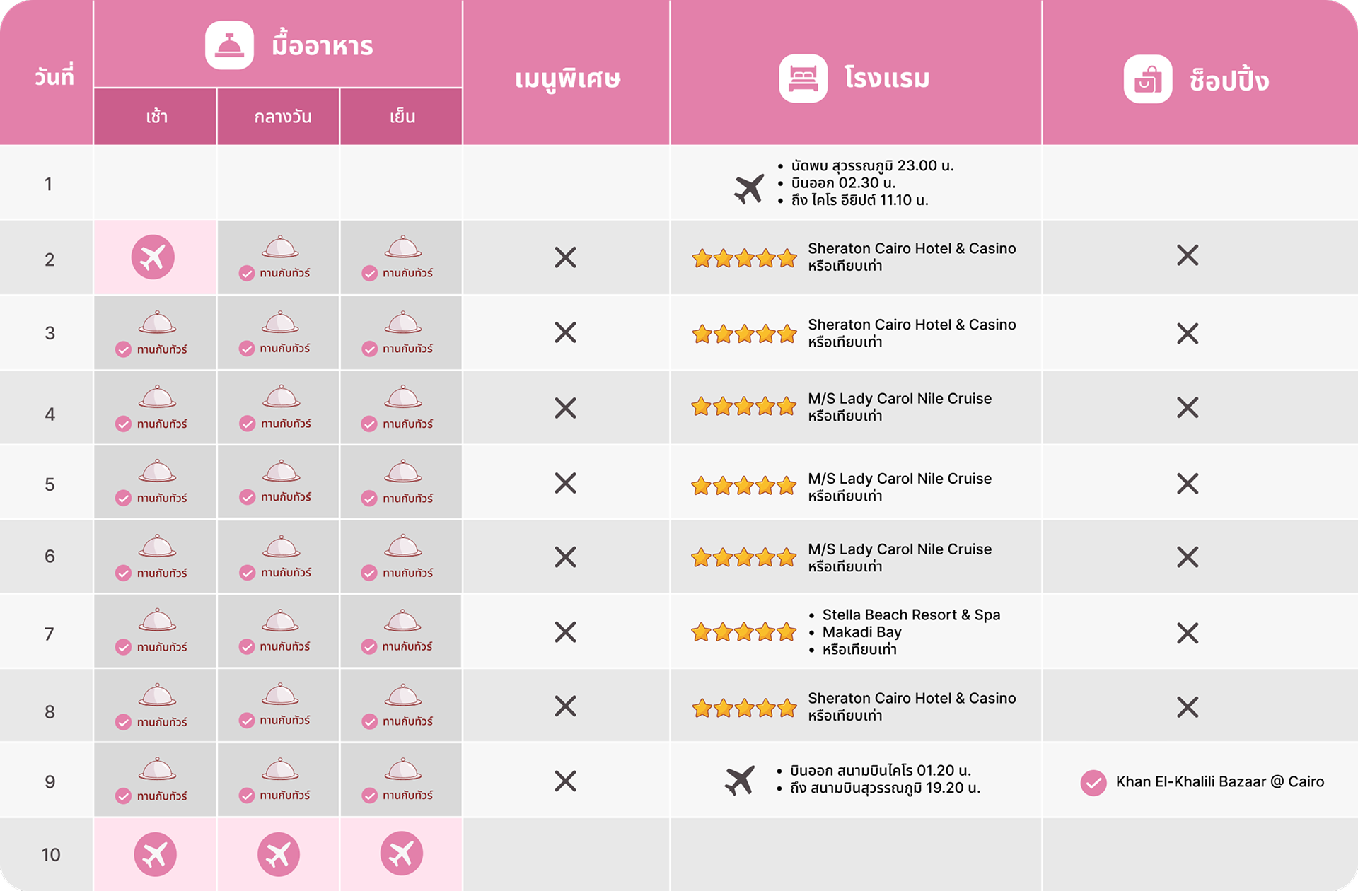 *พักที่ Stella Beach Resort & Spa หรือ Makadi Bay (ระดับ 5 ดาว) หรือเทียบเท่าในระดับเดียวกันฮะ |