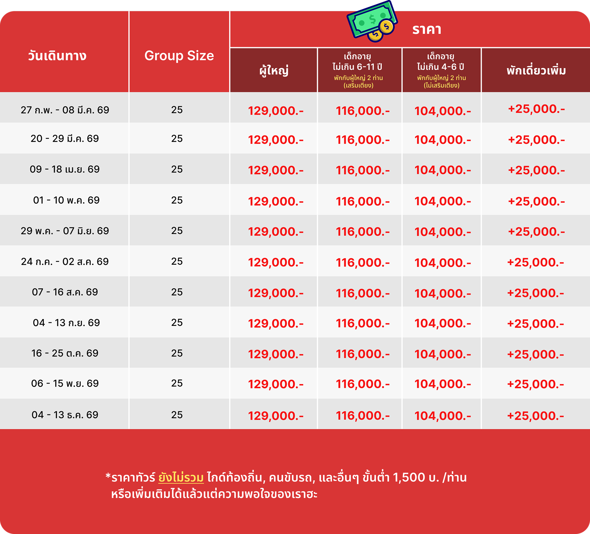 วันที่ 1 | 23.00 น.นัดพบ สนามบินสุวรรณภูมิ |